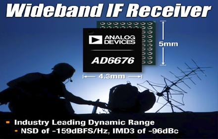 ADI最近推出单芯片宽带IF接收器子系统AD6676