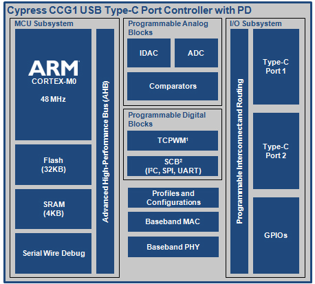 赛普拉斯半导体推出集成可程序设计USB Type-C端口控制器样片