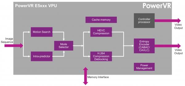 ·PowerVR E5800:专为实现4K @ 60fps而设计的专业消费者级编码器,具备10位精度的增强色深,可实现遵循ITU-R rec BT.2020标准的视频编码功能