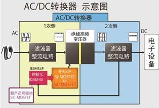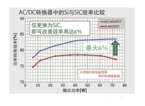 在高耐压范围中,SiC-MOSFET与Si-MOSFET相比,具有“开关损耗与导通损耗少”、“可支持大功率”、“耐温度变化”等优势。基于这些优势,当SiC-MOSFET用于AC/DC转换器和DC/DC转换器等中时,可带来更高的功率转换效率、散热器件的小型化、高频工作使线圈更小等更节电、零部件数量更少、安装面积更小等效果。