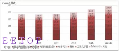 中国当地半导体材料产品多偏向应用于LED、面板等中低阶应用,用于集成电路生产的材料依然以进口为主,中国生产替代空间非常庞大。未来随着多条中国新建晶圆制造产线陆续投产,预计2018年将为中国当地半导体材料产业发展带来新契机。