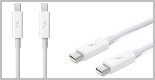 雷电不仅有着超高的数据传输速率,PCIe、DisplayPort(显示器接口)和直流电也被整合进来。雷电的接口形状与Mini DisplayPort完全一致,一个接口能连接多台显示器,并且在Daisy Chain(类似串联)模式下可以同时连接最多六台雷电设备。