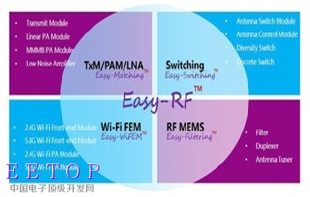作为中国领先的射频及混合信号芯片供应商,锐迪科微电子(以下简称"RDA")宣布推出"Easy-Filtering"射频前端子品牌,该子品牌主要涵括RDA旗下滤波器和双工器为主的芯片产品。这标志着RDA完成了"Easy-RF"全部产品布局,成为首家在射频前端领域完成产品全覆盖的本土企业。