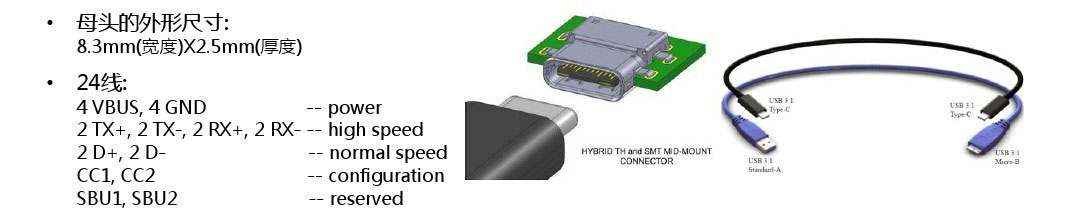 2015-06-01 22:07:29 nUSB TYPE-C,是两个词,首先是USB,说明它是由USB-IF组织发布的,其次是TYPE-C,C是接口物理形式的版本号,相对于TYPE-A,TYPE-B而言的升级版。正如USB3.1是相对于USB2.0, USB1.0的升级版一样,只不过,1,2,3阿拉伯数字的版本号,是相对于接口数据传输协议而言,A,B,C,则是相对于接口的物理形式进行的规定。过去的10多年里,A口普通消费者用的最多的,即普通电脑上那个USB口,称为A口母座,对应的插头,称为A口公座,A口主要的作用是作为数据及电源的下行端口,即拥有A口母座的设备,在电源上来说,属于供电设备(TYPE-C中称为SRC即SOURCE),在数据传输上来说,属于HOST(TYPE-C中称为DFP即Down Stream port)。B口,则反过来,属于用电方(TYPE-C中的 SNK即SINK),数据传输上属于Slaver(TYPE-C中的UFP即UP Stream port)。最开始发布的B口,是方型的,做工业类应用比较多,因为体积大,又先后发布了Mini USB 和 Micro USB,其中的Micro USB形式的B口,成为了现在安卓手机的标配。TYPE-C口的目的,则是把A口和B口合并起来,让一个口,既可以担当HOST,又可以担当SLAVER。TYPE-C带来的变化包括: