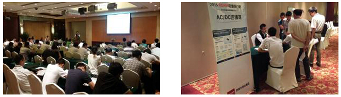 此外,在本次“2015 ROHM科技展”同期还举办了“电源研讨会”。由“AC/DC转换器论坛”和“DC/DC转换器论坛”两大主题组成,就电源技术展开深入探讨。在场参会者与ROHM工程师积极互动,现场气氛热烈。