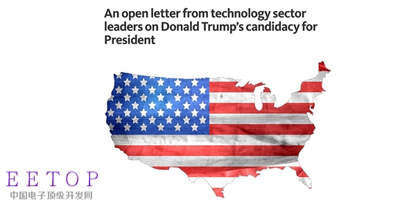 7 月 14 日,一封由硅谷科技公司领袖联名签署的公开信发布到了网络上,包括苹果公司联合创始人史蒂夫?沃兹尼亚克(Steve Wozniak)、Slack 联合创始人斯泰沃特?巴特菲尔德(Stewart Butterfield)、Yelp 首席执行官杰瑞米?斯托普尔曼(Jeremy Stoppelman)等在内的 145 名科技公司领袖以个人名义公开表示自己对于特朗普以及创新的态度: