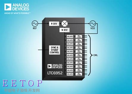 LTC6952:具有 11 个输出并支持 JESD204B 的超低抖动、4.5GHz PLL