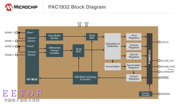 作为业内惟一具有16位分辨率的双通道功率测量器件,PAC1932可以在无主机干预下测量17分钟,开发人员在测量功率和能耗时无需调整电压或电流范围。该器件包含两个可以同时测量电压和电流的16位模数转换器(ADC),这让开发人员能够获得真实的功耗测量结果,从而更好地设计系统,实现高效节能。