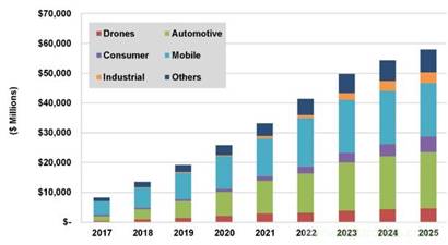 2025年3D成像传感器和硬件子系统市场将实现579亿美元的增长