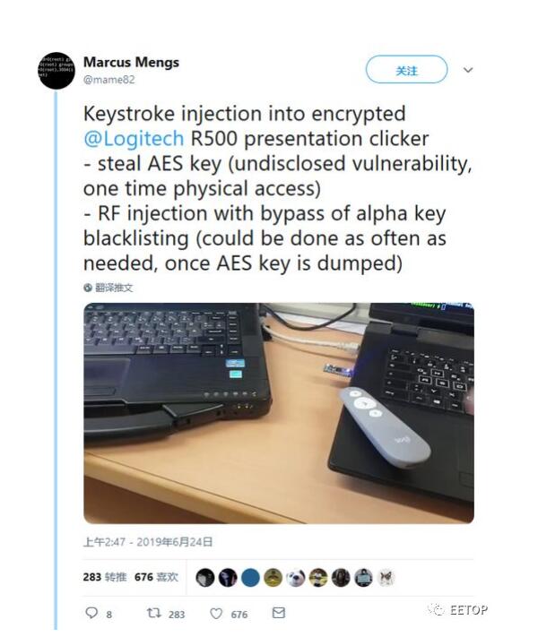 随后外媒The Verge联系了罗技,一位公司代表承认市场上依然存在一些尚未打上补丁的USB收发器。事实上,在2016年年初被曝光MouseJack漏洞以来公司并没有真正意义上的产品召回。