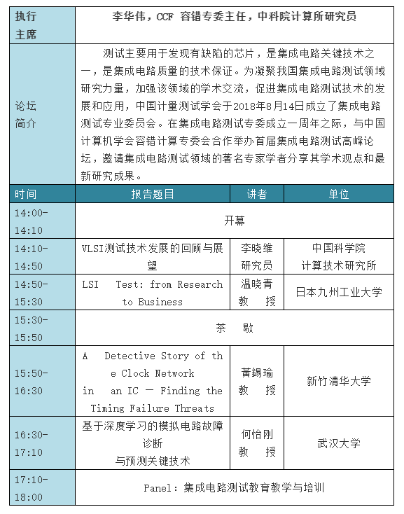 前沿论坛1: 集成电路测试高峰论坛Summit(8月15日)