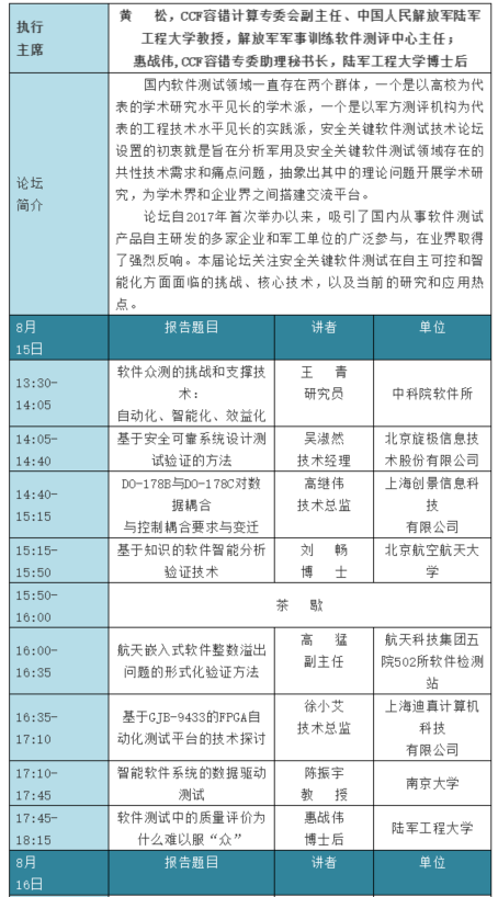 前沿论坛3: 第三届安全关键软件测试技术论坛(8月15-16日)