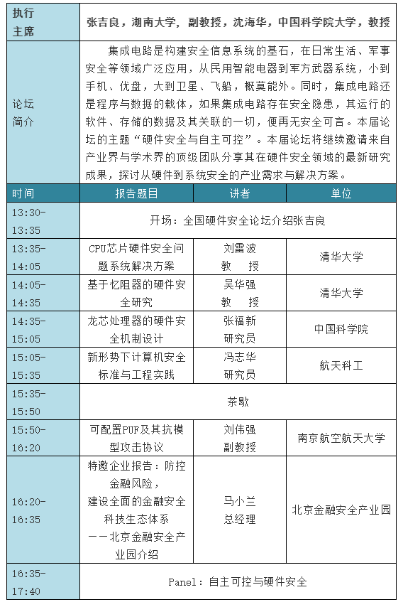 前沿论坛2: 第四届全国硬件安全论坛(8月15日)