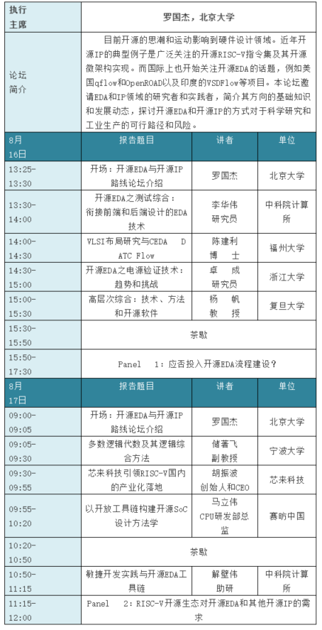 前沿论坛6: 开源EDA和开源IP路线论坛(8月16日)