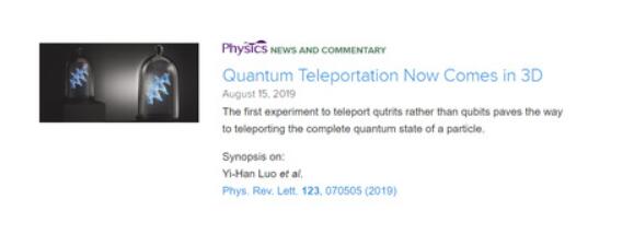 《物理世界》网站报道高维量子隐形传态的示意图