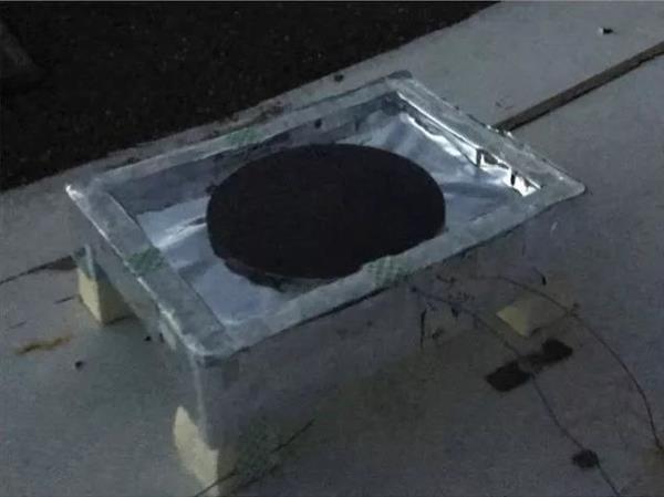为了打造这种夜间可再生能源的新型装置,研究小组从一个商用热电模块开始着手研究,这个模块可以把温差转换成电能。他们把热电模块的一面固定在一个20厘米宽的铝制圆盘上,该圆盘上涂有一层商用黑色油漆。然后研究人员把它放在一个覆盖聚酯薄膜的塑料附件上,并使用透明盖子遮盖。