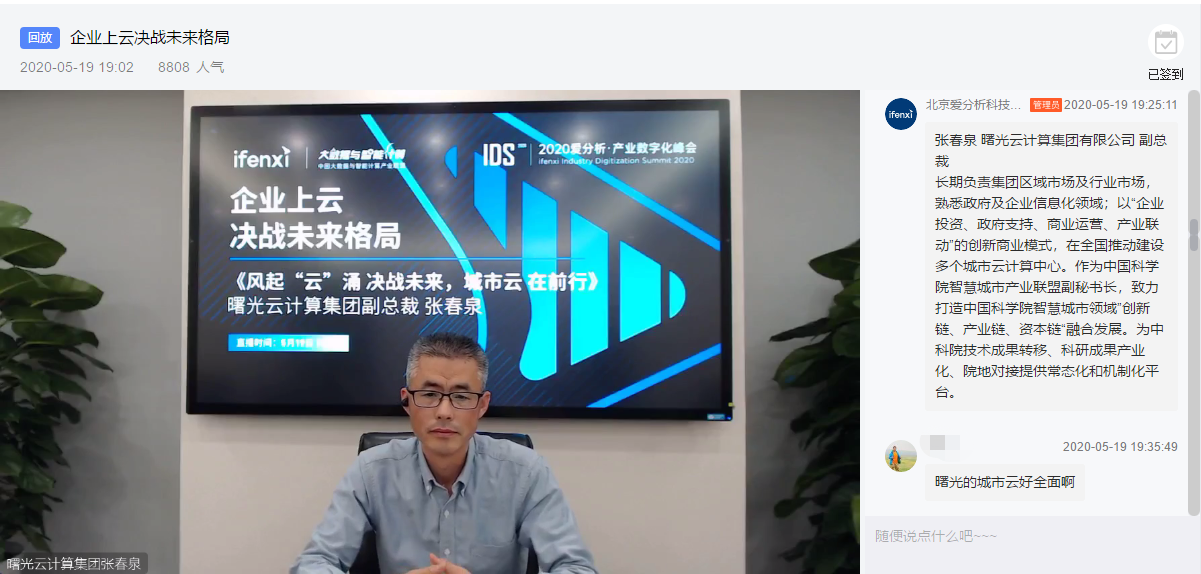 “‘新基建’恰逢其时,在‘新基建’风口下,信息产业迎来良机,城市云不可或缺、大有所为。”5月19日,曙光云计算集团有限公司副总裁张春泉在做客由爱分析联合中国大数据与智能计算产业联盟共同举办的2020爱分析·产业数字化峰会上表示。