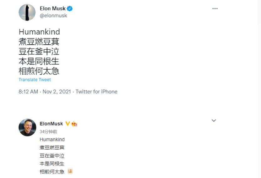 马斯克发中文《七步诗》引各种猜测:老外看不懂求助翻译