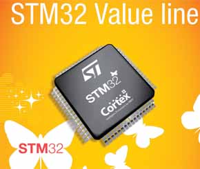 STM32超值型系列将让更多开发人员进入意法半导体的STM32微控制器大家族,目前STM32包含五大产品线,为客户提供价格敏感、功耗敏感、以互连为中心或高性能的微控制器。STM32系列产品共有110款产品,提供各种功能特性和片上存储容量,同时,所有产品在软件和引脚上相互兼容。这种通用性可简化战略处理器平台选择,有助于设备厂商扩展和升级设计,在不同的设计重复使用相同的知识产权和开发工具,最大限度地降低产品成本和上市时间。