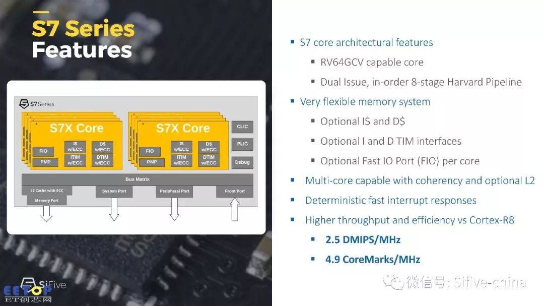圣马特奥市,加利福尼亚州——10月31日,SiFive发布7系列高性能 RISC-V CPU 架构。该系列包括E7,S7和U7系列。 SiFive Core IP提供真正的异构,可定制的架构,使客户能够在SoC中灵活地组合E,S和U内核。 SiFive E7,S7和U7系列IP将共同推动下一代RISC-V内核,支持5G,网络,存储,增强现实,虚拟现实,人工智能,同步定位和映射(SLAM)以及传感器融合功能。