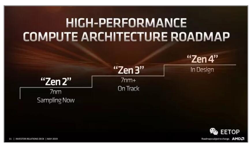 按照今年5月的官方PPT,Zen 3基于7nm+工艺、Zen 4正在设计,Zen 5的开发阶段可能更初步些。