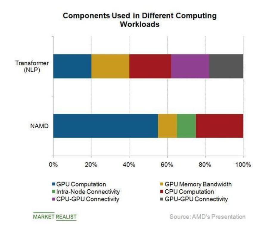 Lisa Su指出,每个人工智能工作负载都有不同的计算要求。互连技术是解决方案,因为它将不同的部分互连到同一个系统。她用以下例子解释了这一点: