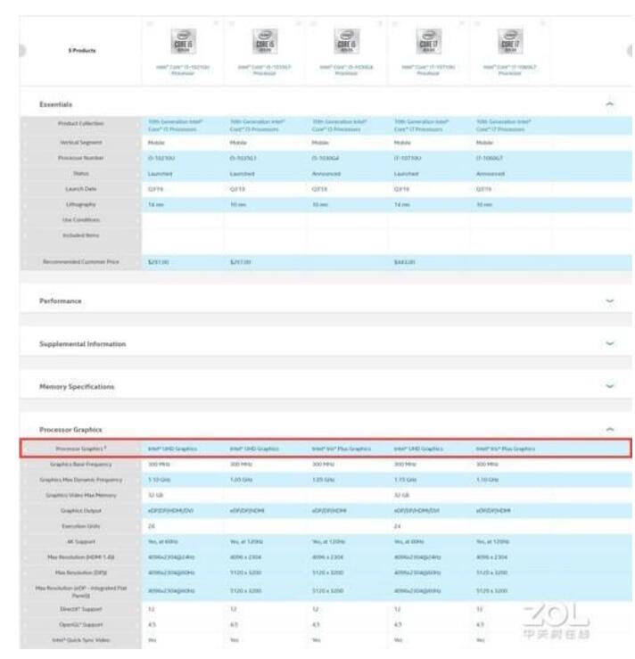 核芯显卡差异,是英特尔10代酷睿的一个主要不同点。