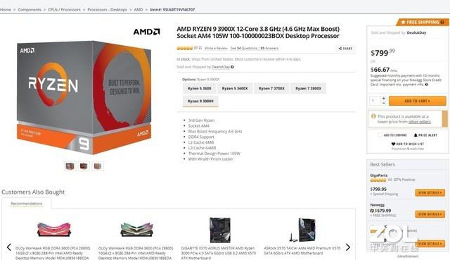 在国外,无论是亚马逊还是新蛋,锐龙9 3900X的价格疯涨特别多,由首发499美元涨到了现如今近800美元,约合人民币5697元,价格上涨近60%,相当夸张。