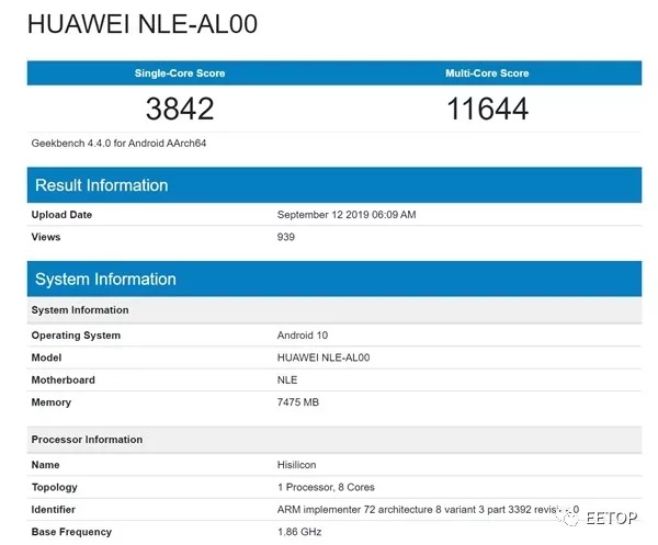 2019-10-02 18:59:01 EETOP近日GeekBench官网出现疑似Helio M70的跑分结果,单线程3447/多线程12151,搭载最新A77架构,不出意外的话这款就是联发科首款5G芯片Helio M70。
