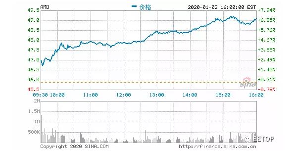 AMD在2019年的上涨在很大程度上是由于围绕新产品的乐观情绪。它在5月份发布了最新一代的Ryzen桌面处理器,紧接着在8月份发布了新的服务器处理器。这两家公司都被视为增强了AMD相对于英特尔的竞争优势。AMD还宣布将成为微软即将推出的一款视频游戏机的主要芯片供应商。