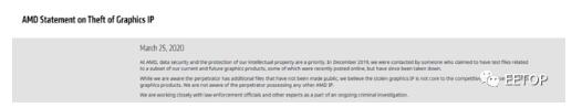 尽管我们知道犯罪者还有其他文件没公开,但我们认为,被盗的图形 IP 并不是我们图形产品的竞争力和安全性的核心。至于犯罪者是否还有其他 AMD IP,我们目前尚不知晓。