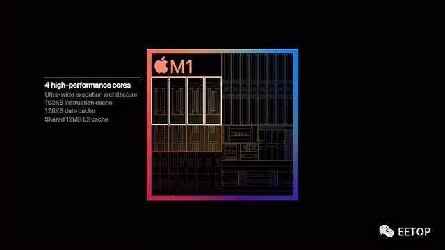 新款Apple M1确实是Apple进行新的重大旅程的开始。在苹果公司的演示中,该公司并没有透露太多设计细节,但是有一张PPT告诉了我们很多有关芯片的封装和设计的信息: