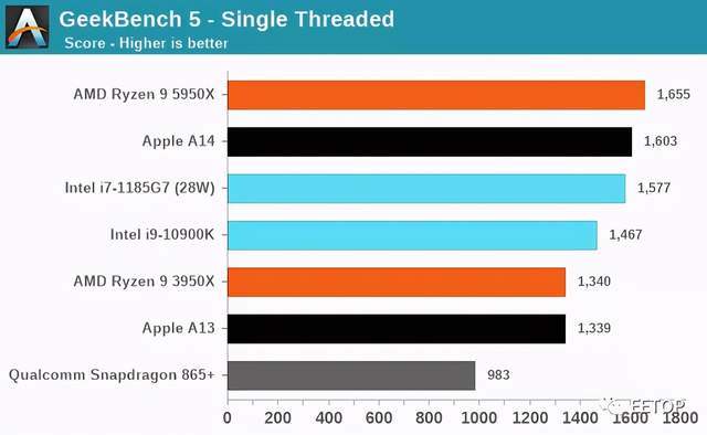 我们期望M1内核比我们今天将要展示的A14更快,因此苹果声称拥有世界上最快的CPU内核的说法似乎是非常合理的。