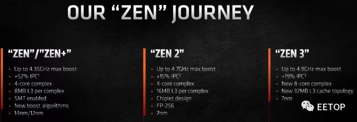 ▲ Zen架构的旅程始于2017年,到现在已经进入Zen3世代。