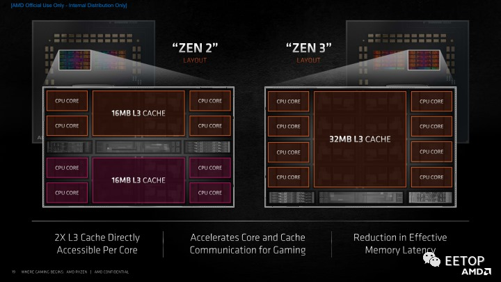2020-11-13 12:51:56 EETOP整理自techbang 作者:李文恩在过去很长的一段时间中,AMD一直无法在桌面处理器的单核心性能领先Intel,只能靠着在单一处理器封装塞入更多核心,以及设定较低的价格,与对手在市场相互拼搏,然而AMD却透过Ryzen 5000系列处理器反转此一情况,就让我们一起来看看Zen 3架构的改变之处。