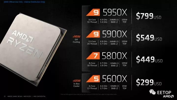 ▲首波推出的4款Ryzen 5000系列处理器价格从美金299元至799元不等,其中只有Ryzen5 5600X附上Wraith Stealth散热器。