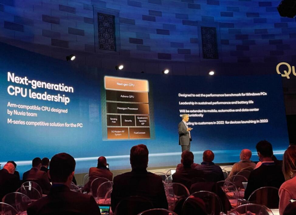 高通首席技术官 James Thompson 博士在公司 2021 年投资者大会上宣布了新处理器的计划,目标是在 2023 年推出,推出前九个月内向硬件客户提供样品。