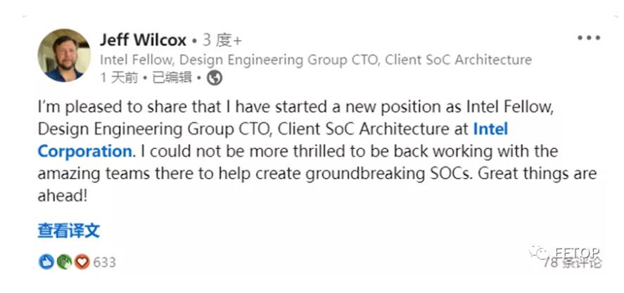 有意思的是,这不是Jeff Wilcox第一次为英特尔工作。事实上,除了在英伟达(Nvidia)工作了一年半之外,在8年前加入苹果之前,Jeff Wilcox从2010年到2013年在英特尔工作,担任英特尔Atom处理器芯片组程序的电源管理架构师。如果有什么不同的话,那就是他让苹果摆脱对英特尔x86的依赖表明,只要有创新的可能,他就不会太在意仅仅维护现状。