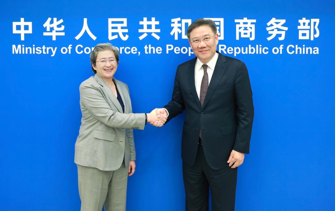 3 月 24 日消息,据国家商务部官网新闻稿,商务部部长王文涛今日会见美国 AMD 半导体公司董事会主席兼首席执行官苏姿丰,双方就中美经