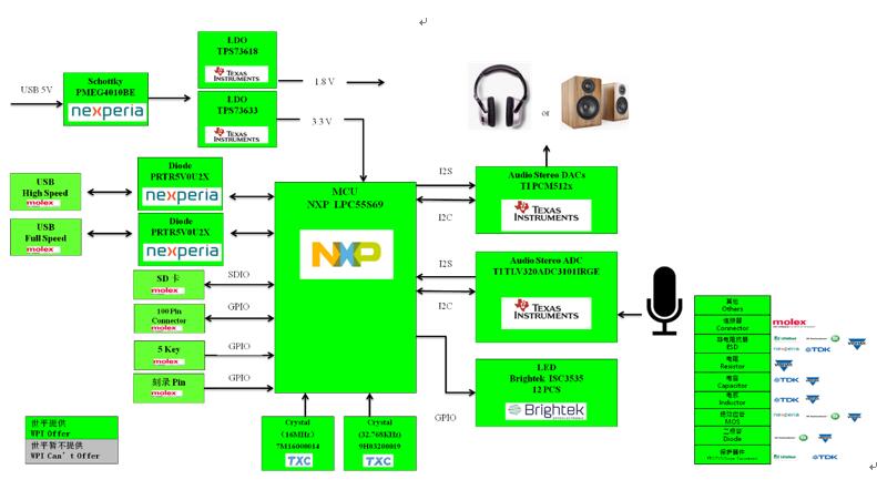 图示2-大联大世平推出基于NXP LPC55系列之电脑周边产品应用解决方案的方案块图