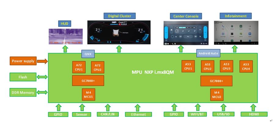 仪表+车载娱乐双作业系统解决方案,用户只需采用iMX8QM一颗单