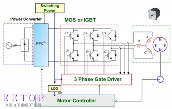 Richtek的RT7100/RT7075主要功能为BLDC/PMSM电机控制应用微处理器。它集成了ARM 32位的Cortex-M0内核和外围马达控制电路并内含FOC(Field Oriented Control)与Sensor less(无传感器)电机控制算法。该系统包含ADC、DCA、通信接口、SVPWM、Watch dog、Timer、电流感应,过电流保护和过温度保护等功能,且都集成在同一个IC中,可有效减少周边器件数量与节省电路板空间和降低系统成本。上述实用功能,使得RT7100/RT7075能广泛应用于马达控制领域。