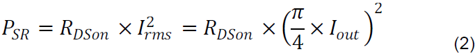如果二极管用固定的正向电压降VF建模,则可以基于等式1估计每个整流二极管的损耗。,采取这样的方式计算,对于具有0.5V正向压降的12V,10A输出设计来说,每个二极管产生2.5W的损耗,这意味着总效率损失约为4%。