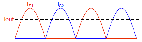 使用二极管整流器时,如图1所示,全部输出电流流过输出二极管。对于低电压或高输出电流应用,这些二极管整流器中存在显著的效率损失和热应力。