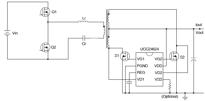 图5.用于LLC转换器的UCC24624双同步整流器控制器