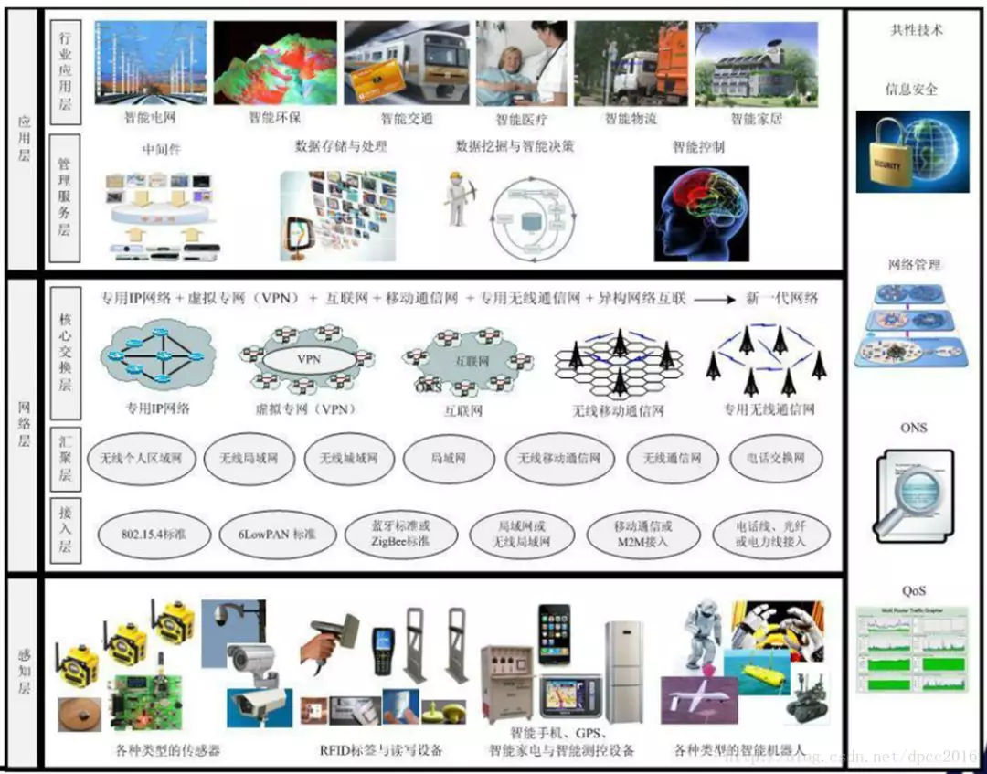 由于物联网架构分割,与早期的ICT强调的”端管云”基本一致。所以在各个网络层次上,不同行业之间是可以复用的。
