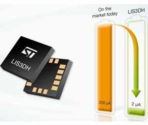 意法半导体进一步扩大其运动传感器产品阵容,推出功耗极低的数字输出3轴加速计LIS3DH,比市场现有的解决方案减少90%以上的功耗,同时缩小封装面积和提升芯片功能性。