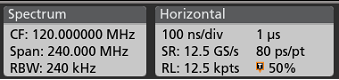 通过独立控制,您可以使用熟悉的菜单方式来设置中心频率、频宽和RBW,而不会影响波形视图中的时间标度。反之亦然,水平标度变化不会影响频谱。由于独立控制功能,您可以把频域事件与其他时域事件轻松地关联起来。