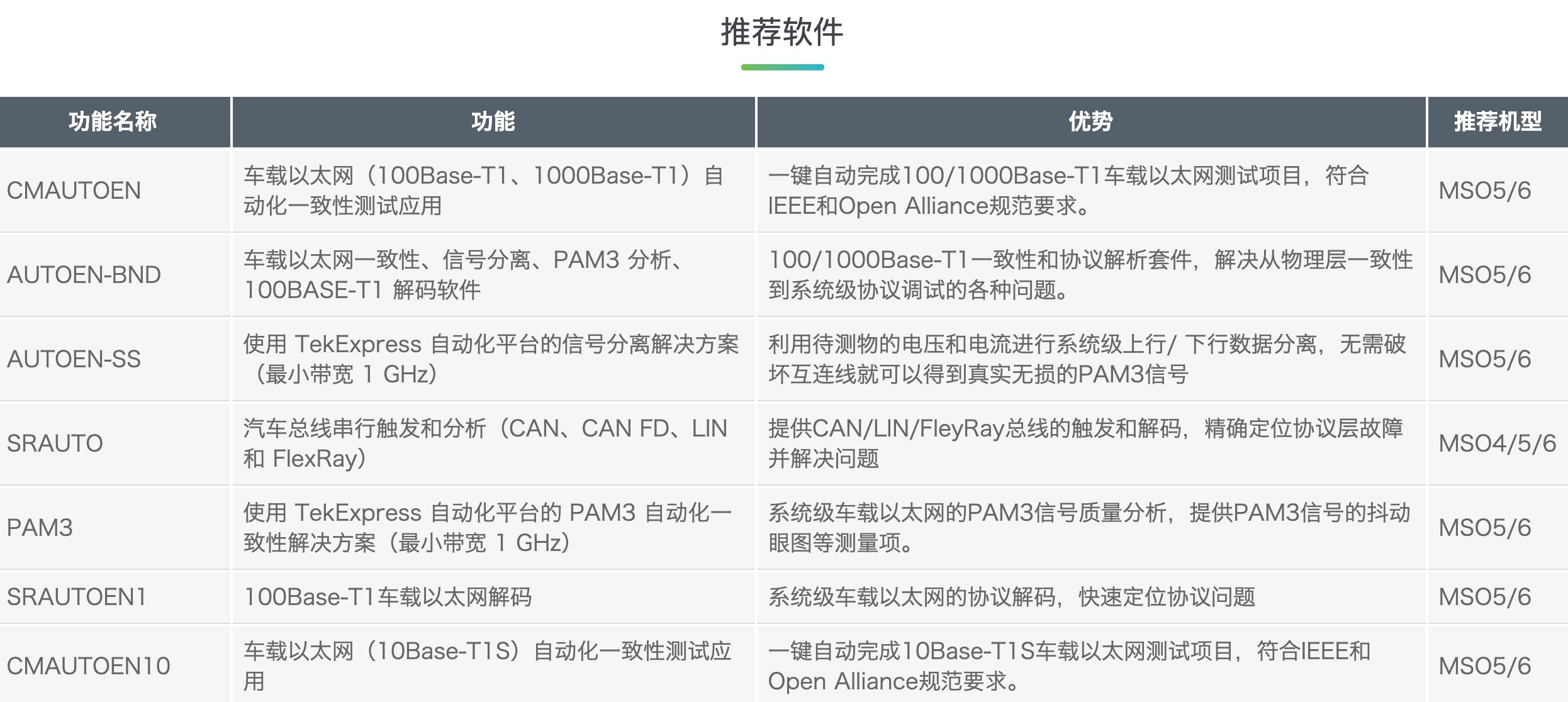 软件,支持各种复杂、高噪声环境下的车载以太网