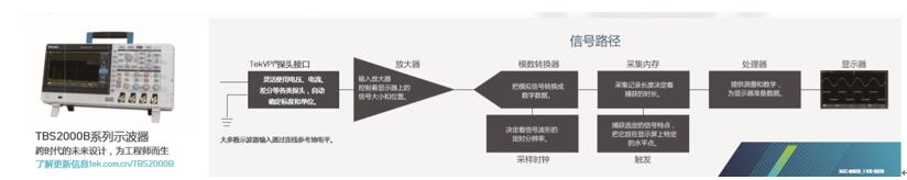 的信号路径相当复杂,因为信号必须通过各种元件(包括放大器、继电器、滤波器、ADC 等),然后才能处理并显示信号。TBS2000B的设计研发团队重新构思了这条信号路径,以便更紧密地整合实时信号的采集和处理,并能够确保更低的输入信号噪声和更好的信号完整性。TBS2000B系列
